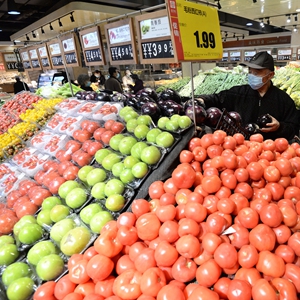 4月9日,顾客在河北省邯郸市丛台区一家超市选购蔬菜。国家统计局4月9日发布数据,3月份,全国居民消费价格指数(CPI)同比上涨0.4%。新华社发(郝群英 摄)