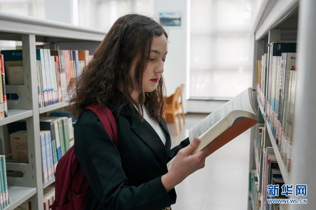 热萨莱提在学校图书馆内挑选图书(4月7日摄)。