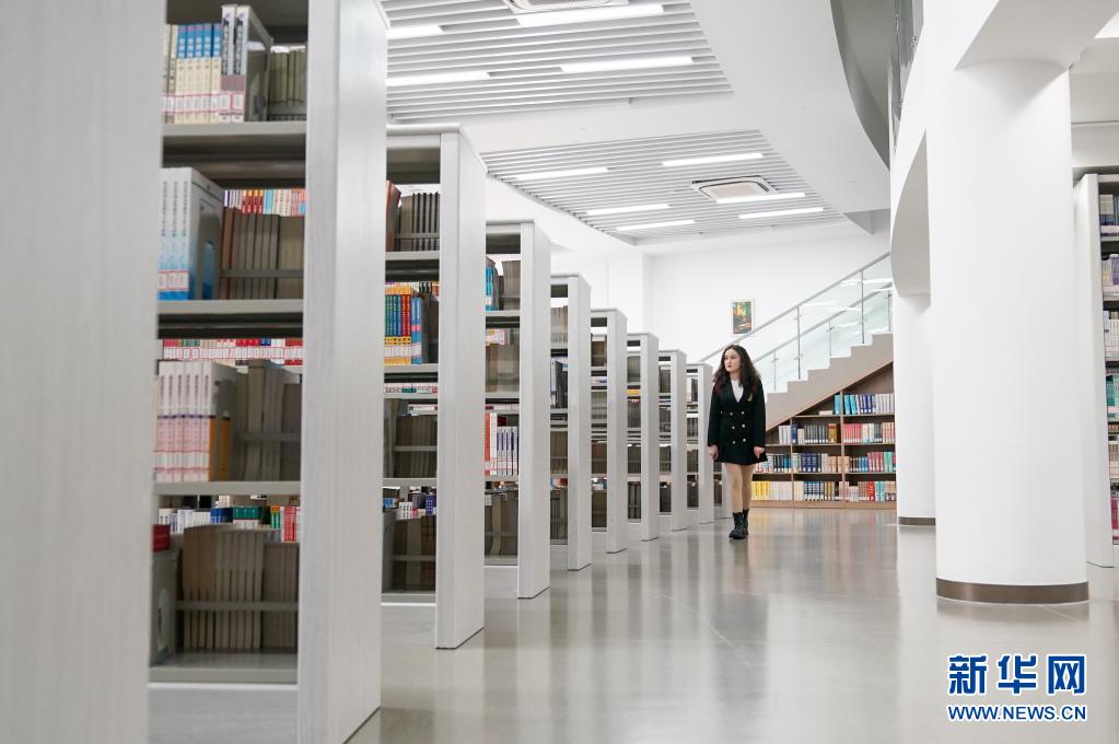 热萨莱提在学校图书馆内(4月7日摄)。新华社记者 丁汀 摄