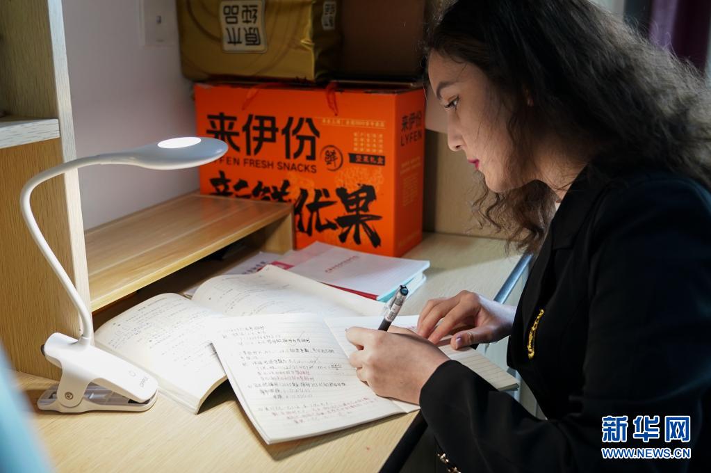 热萨莱提在宿舍自习(4月7日摄)。新华社记者 丁汀 摄