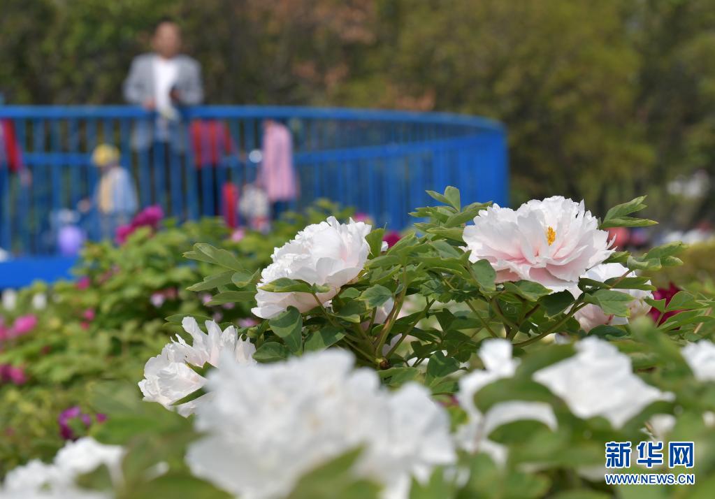 菏泽市曹州牡丹园的牡丹花竞相开放(4月8日摄)。新华社记者 李贺 摄