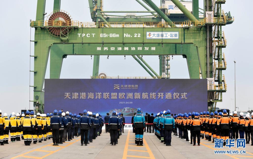 4月9日,全球最大集装箱海运联盟——海洋联盟在天津港开通欧洲新航线,这也是天津港今年新开通的首条外贸远洋干线。