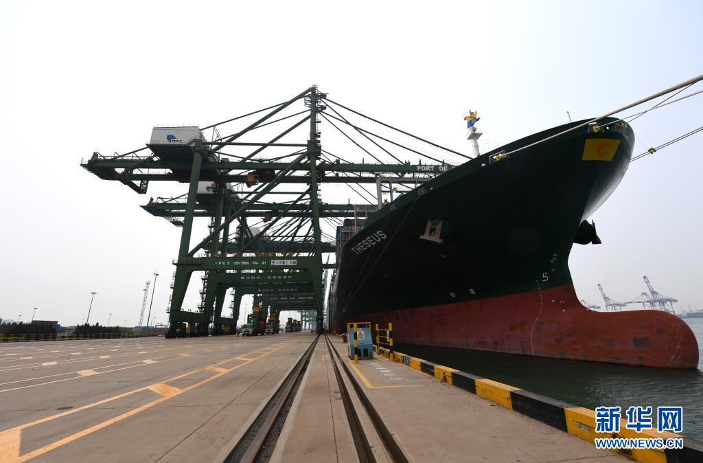 4月9日,全球最大集装箱海运联盟——海洋联盟在天津港开通欧洲新航线,这也是天津港今年新开通的首条外贸远洋干线。
