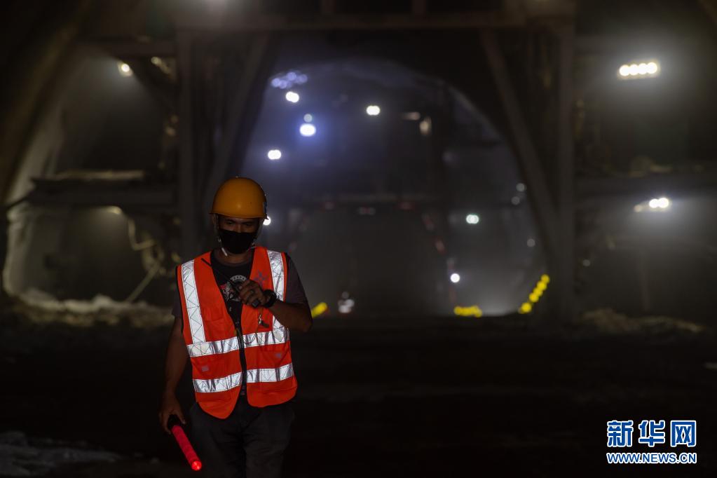 4月9日,一名工人在马来西亚丁加奴州北加隧道内行走。