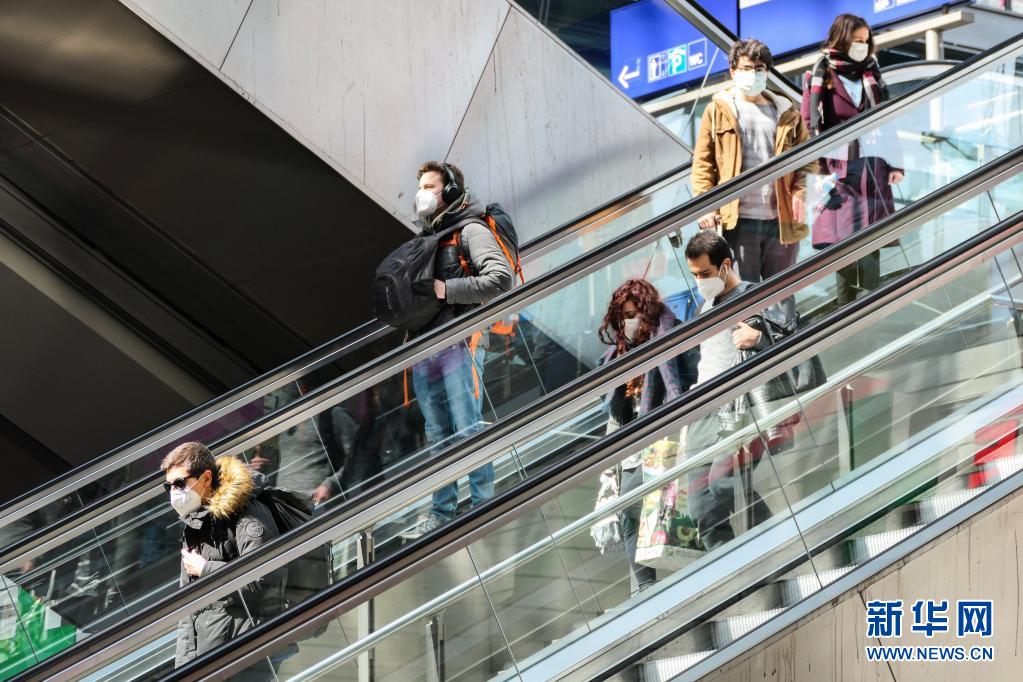 这是4月9日在德国首都柏林主火车站拍摄的行人。新华社发(斯特凡·蔡茨摄)