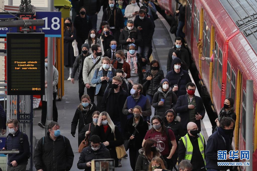 4月9日,通勤者在英国伦敦早高峰的滑铁卢车站内行走。新华社发(蒂姆·爱尔兰摄)
