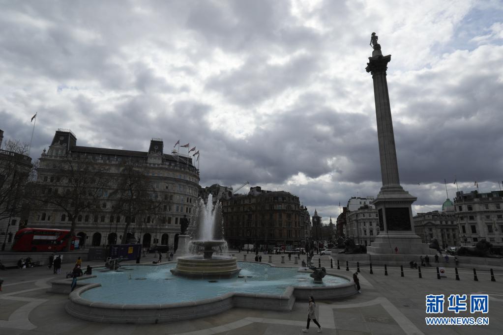4月9日,人们在英国伦敦的特拉法加广场上行走。新华社发(蒂姆·爱尔兰摄)