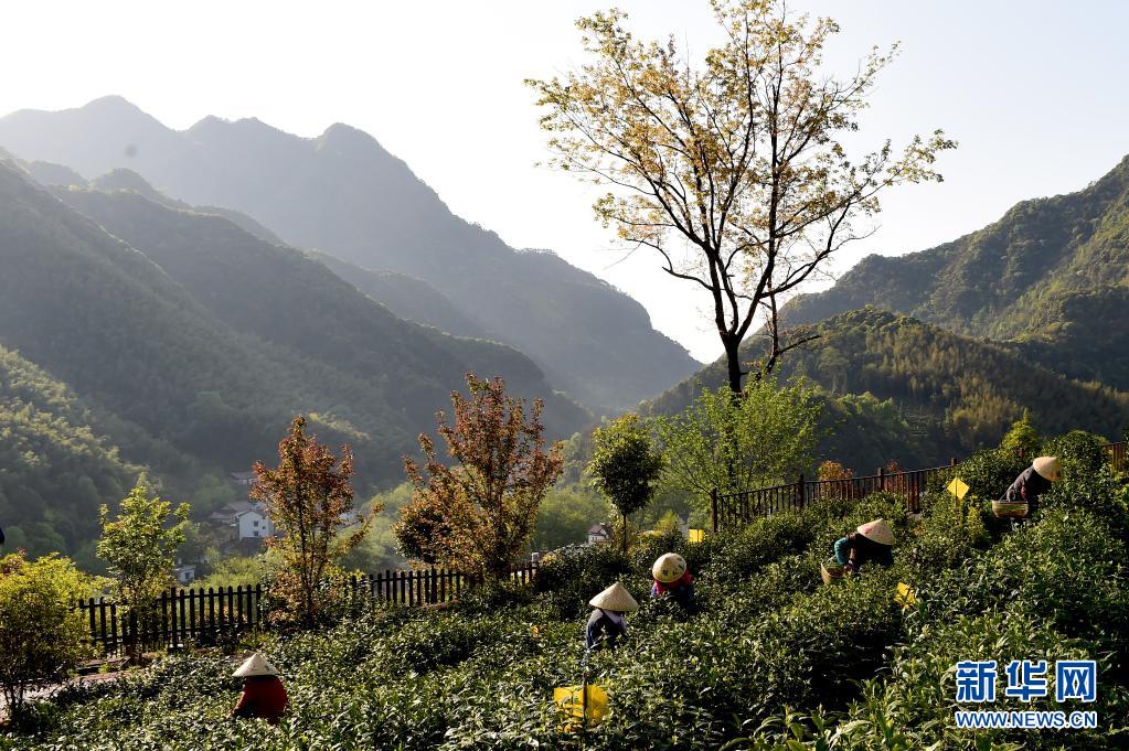 4月10日,茶农在泾县汀溪乡生态茶园内采茶。