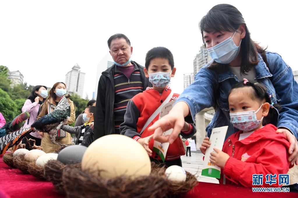 4月10日,小朋友和家长了解蛋壳标本。新华社记者 唐奕 摄