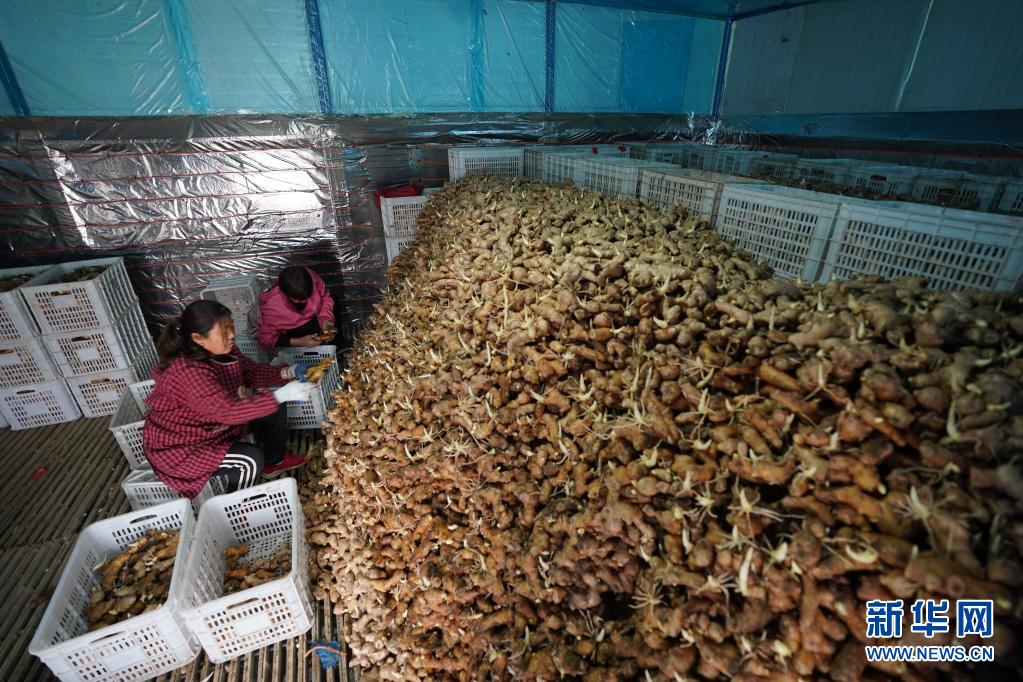 4月10日,河北邢台经济开发区沙河城镇北关村农民在筛选姜种。连日来,河北邢台经济开发区农民抢抓农时种植生姜,田间一派繁忙景象。新华社记者 牟宇 摄