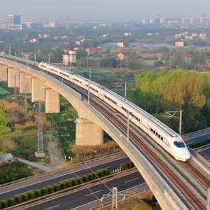 4月10日拍摄的江苏省南通市南通动车所存车线上排列的动车组(无人机照片)。4月10日零时起,全国铁路实行新的列车运行图。新华社发(许丛军 摄)