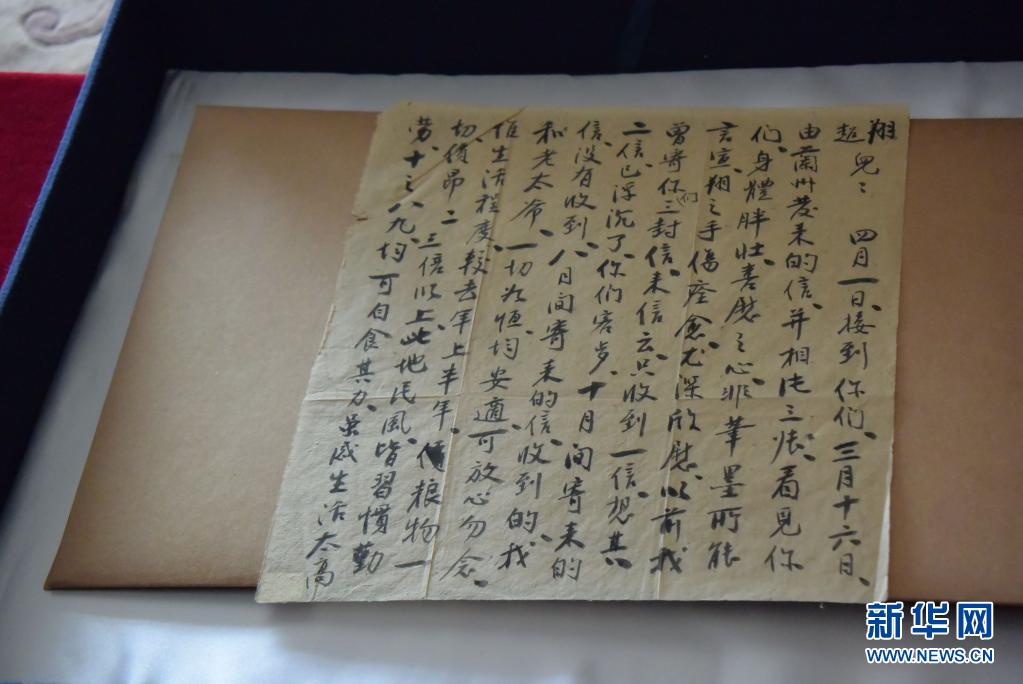 这是在周恩来邓颖超纪念馆拍摄的杨振德写给女儿邓颖超和女婿周恩来的家书(3月31日摄)。