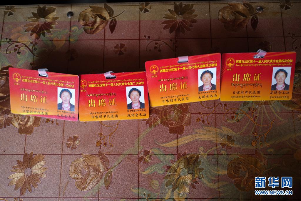 这是尼玛仓木决的人大代表出席证(3月20日摄)。