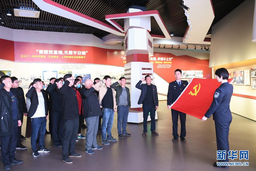 4月11日,参观者在枫桥经验陈列馆重温入党誓词。