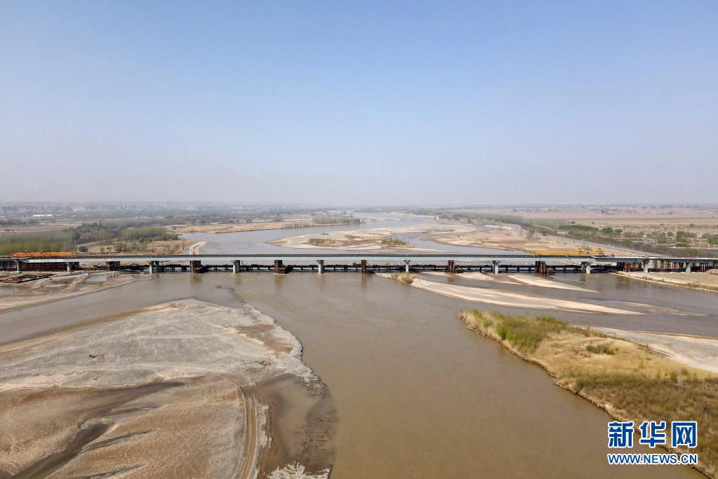 这是4月11日拍摄的乌玛高速公路镇罗黄河特大桥(无人机照片)。新华社记者 唐如峰 摄