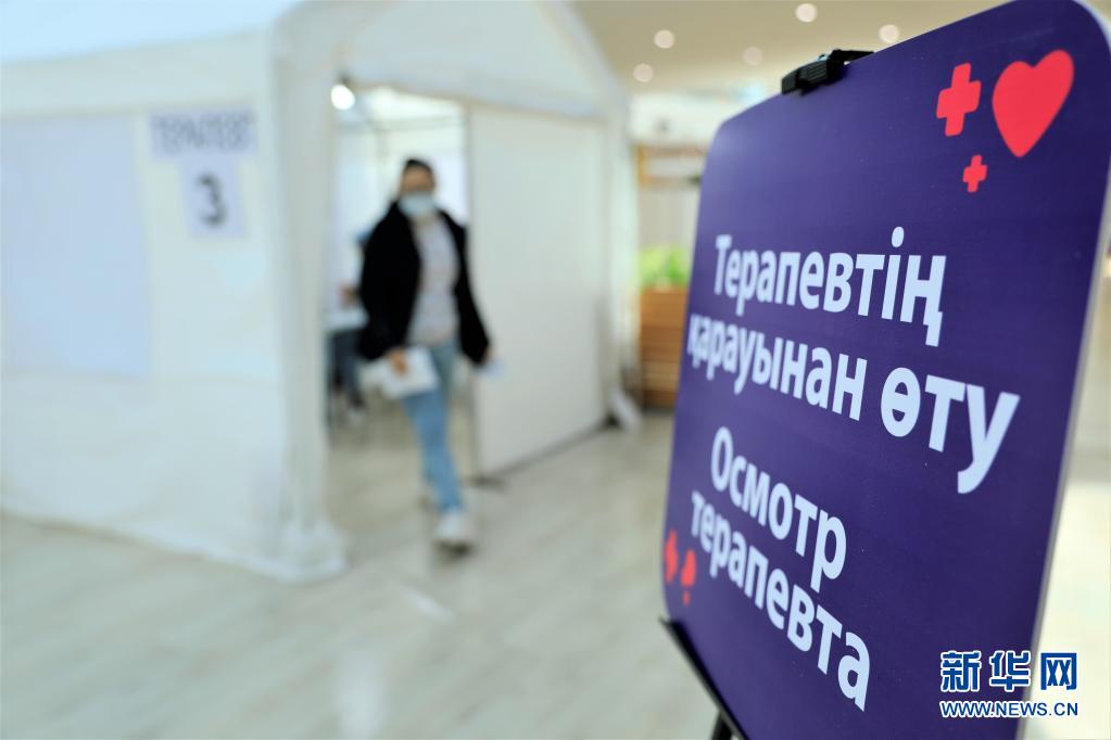 这是4月12日在哈萨克斯坦首都努尔苏丹的购物中心拍摄的新冠疫苗接种点。