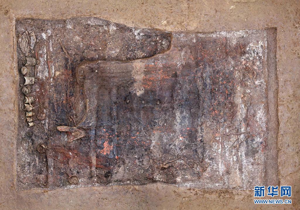 这是河南伊川徐阳墓地大型墓葬A区17M15及部分随葬遗物(资料照片)。