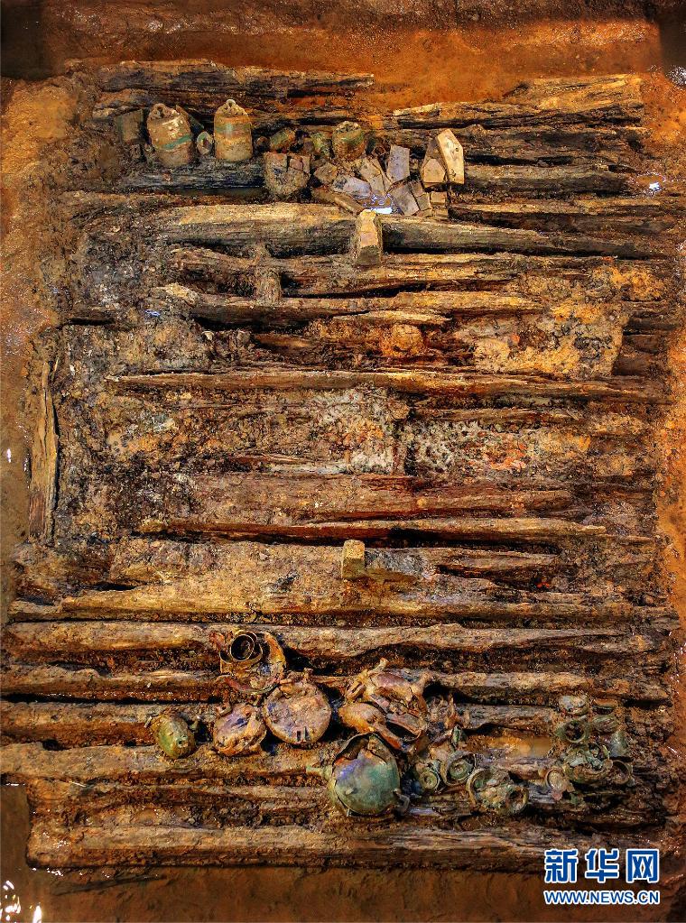 这是河南伊川徐阳墓地大型墓葬A区M2及随葬遗物(资料照片)。
