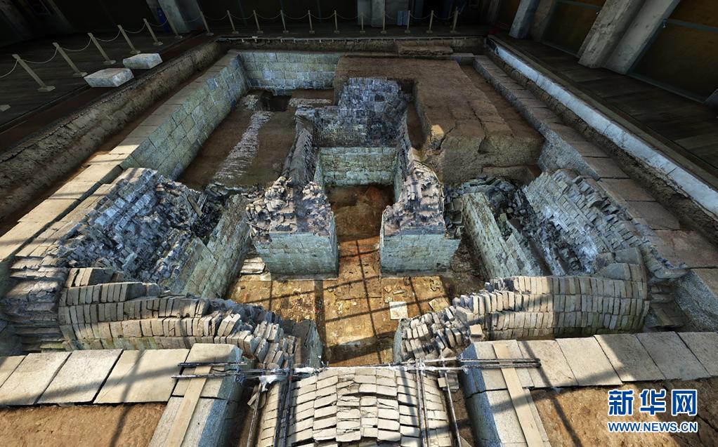 江苏徐州土山二号墓清理后墓葬全景(资料照片)。