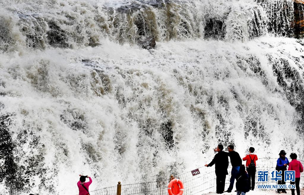 近日,随着黄河上游冰凌消融,位于秦晋峡谷的黄河壶口瀑布水量增大。游人纷纷前来观看“一里壶口十里雷,春水腾雾浪滔天”的壮观景象。