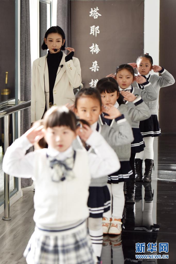 洛桑卓玛给参加少儿模特培训的学生们上课(3月13日摄)。