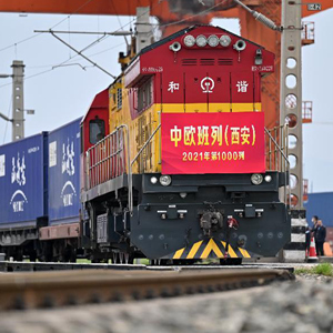 当日,装载着自行车、玩具、洗碗机等50车货品的X9041次中欧班列(西安),从西安国际港站驶出,开往哈萨克斯坦,这是2021年陕西开行的第1000列中欧班列。