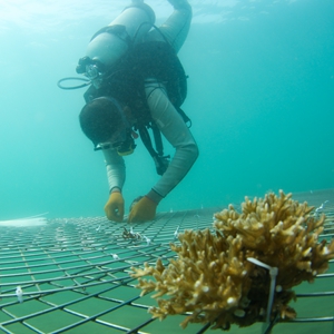 三亚珊瑚礁生态研究所作为参与该项目的科研团队之一,在与海南浙江大学研究院的合作基础上,于崖州湾东锣岛周边海域实施了系统性珊瑚礁生态修复示范工程。据研究所负责人介绍,研究所通过采用自主设计、制作、投放的3个大型类礁人工苗圃和具有新型亲和表面材料的“蜘蛛”状人工礁体,结合补植、抚育、管护珊瑚等手段,构建珊瑚礁生境重建区和珊瑚礁生境恢复区,如今珊瑚存活率达70%以上,珊瑚覆盖率增加10%,逐步扭转生物多样性退化趋势。