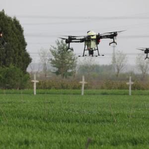 4月13日,植保无人机在陕西省兴平市一片麦田里进行条锈病防治作业。