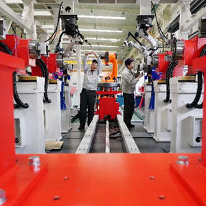 4月13日,位于唐山高新技术产业开发区的一家自动焊接装备有限公司工人在调试焊接机器人。