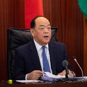 4月13日,澳门特区行政长官贺一诚列席立法会全体会议,回答议员提问。新华社记者 张金加 摄