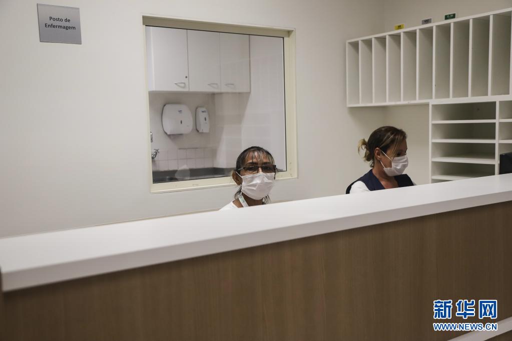4月13日,两名护士在巴西圣保罗刚落成的医院工作。