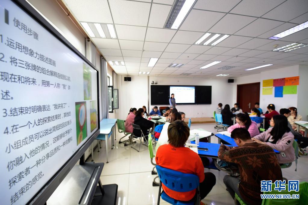 4月14日,青海民族大学师范学院师生在智慧教室内上课。