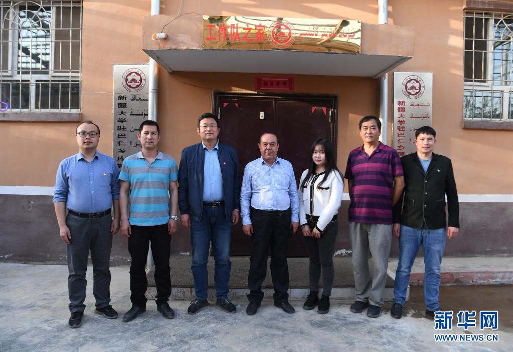 这是新疆大学驻巴仁乡库勒艾日克村工作队部分队员合影(4月10日摄)。