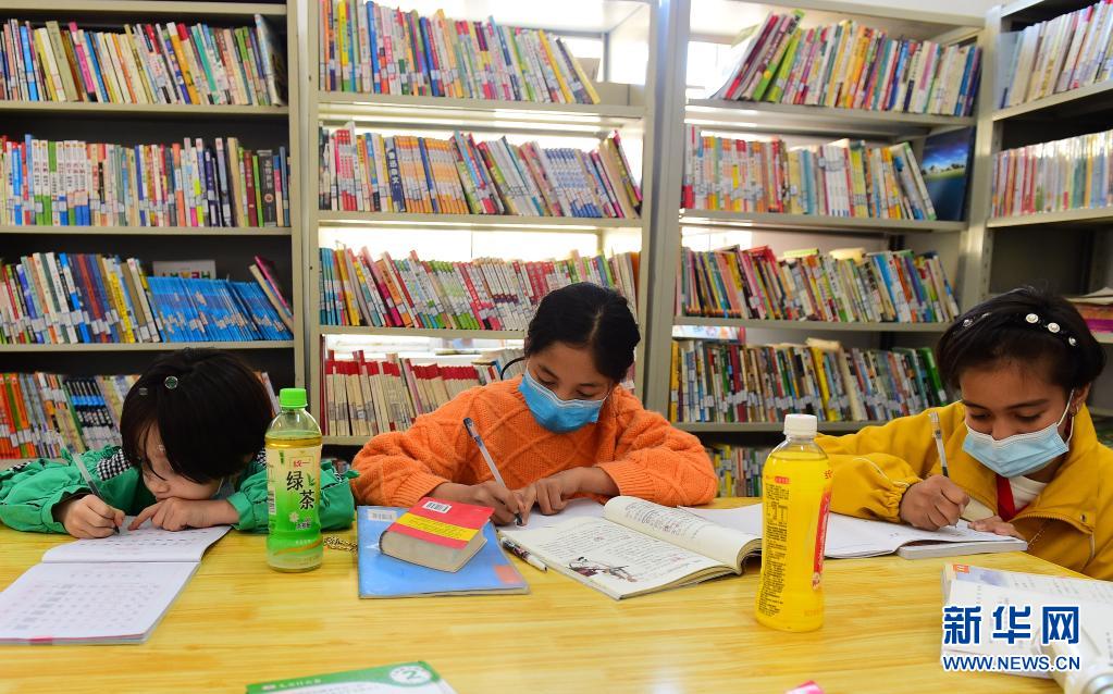 巴仁乡库勒艾日克村的孩子们在“新疆小角落”文化室学习(4月10日摄)。