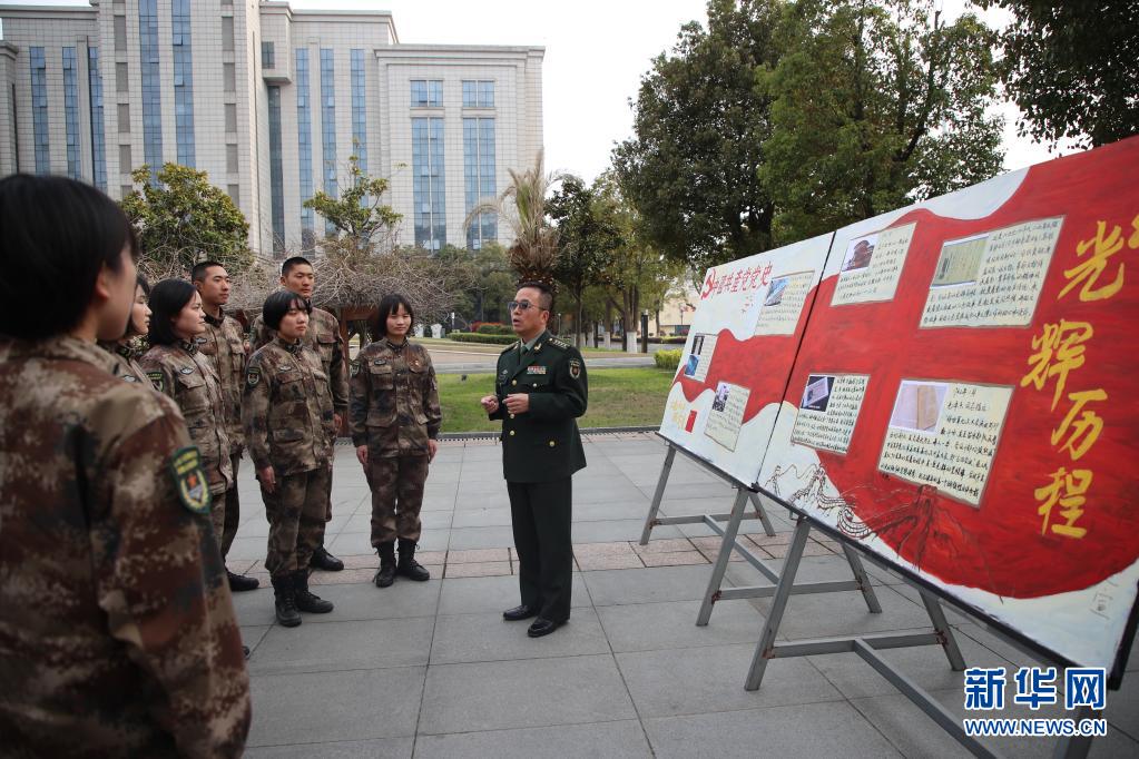 全军党史学习教育宣讲团成员、军事科学院军队政治工作研究院研究员郭志刚(右一)与无锡联勤保障中心某团官兵开展互动交流,答疑解惑(3月23日摄)。新华社发(曹树鼎 摄)