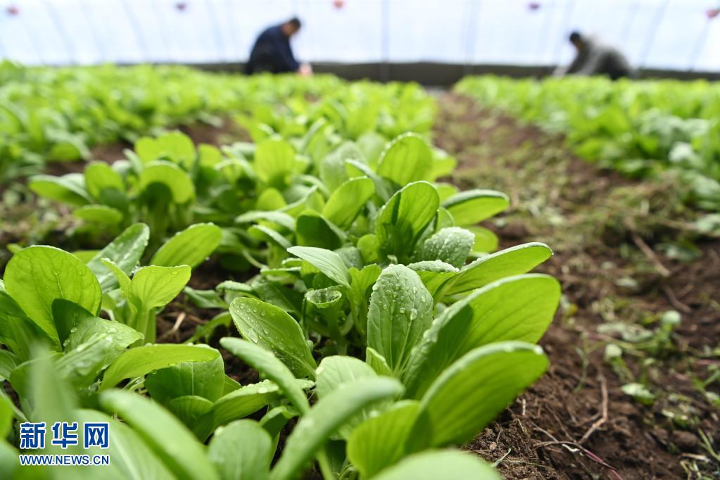 在黑龙江北大荒农垦集团双峰农场有限公司果蔬产业园区智控温室,工作人员在清除菜地里的杂草(3月5日摄)。