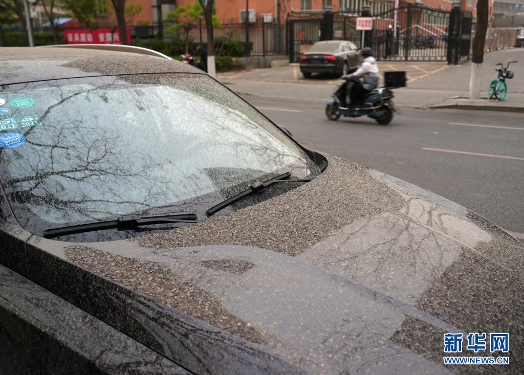 4月15日,在北京市西城区思源胡同,停在路边的汽车上落满泥点。