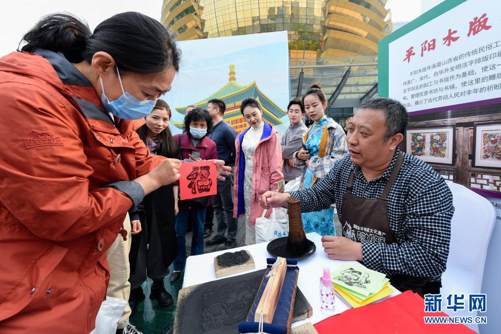 4月15日,市民在推介活动现场体验木版年画印制。当日,“浙乡有礼 晋门迎客”文旅推介活动在浙江杭州举行,山西省文化和旅游厅携全省精品文化旅游资源,走进长三角城市杭州,向浙江民众推介“华夏古文明 山西好风光”。新华社记者 徐昱 摄