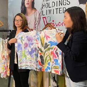 4月15日,广州纺织工贸企业集团有限公司工作人员运用绿幕进行广交会直播。