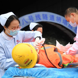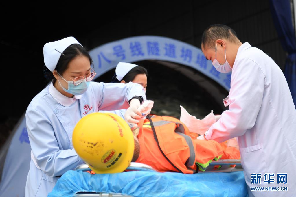 当日,重庆市2021年隧道坍塌应急救援演练在中铁十一局五公司承建的重庆轨道十八号线项目奥体中心站建设工地举行。演练模拟隧道施工时,突发拱顶坍塌、工人被困的情况,组织抢险人员和机械设备在指定时间内赶赴事故现场,实施应急救援处置。