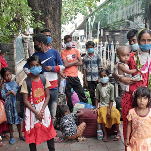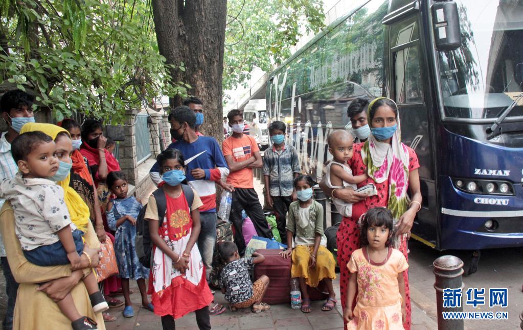 4月15日,戴口罩的人们在印度班加罗尔等待乘车。