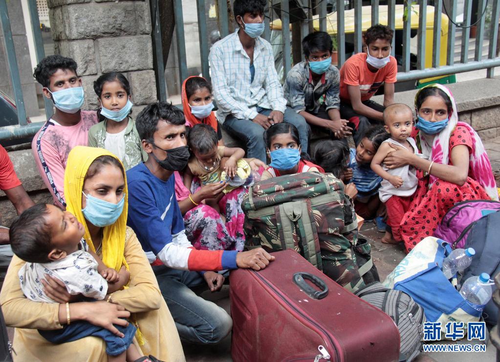 4月15日,戴口罩的人们在印度班加罗尔的一处车票销售中心外等待。