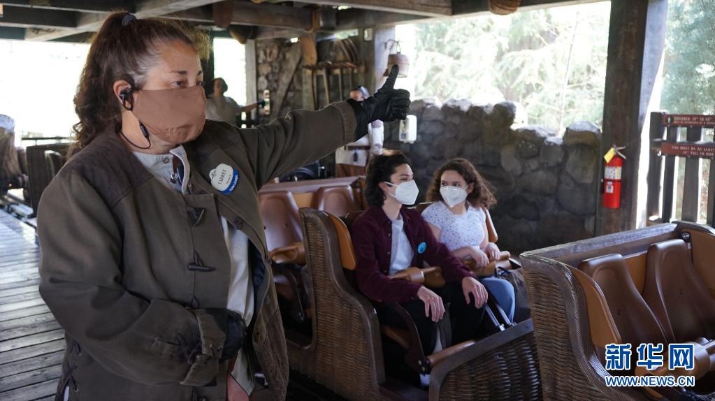 4月15日,在美国加利福尼亚州洛杉矶好莱坞环球影城,游客在开放预览日乘坐游乐项目。