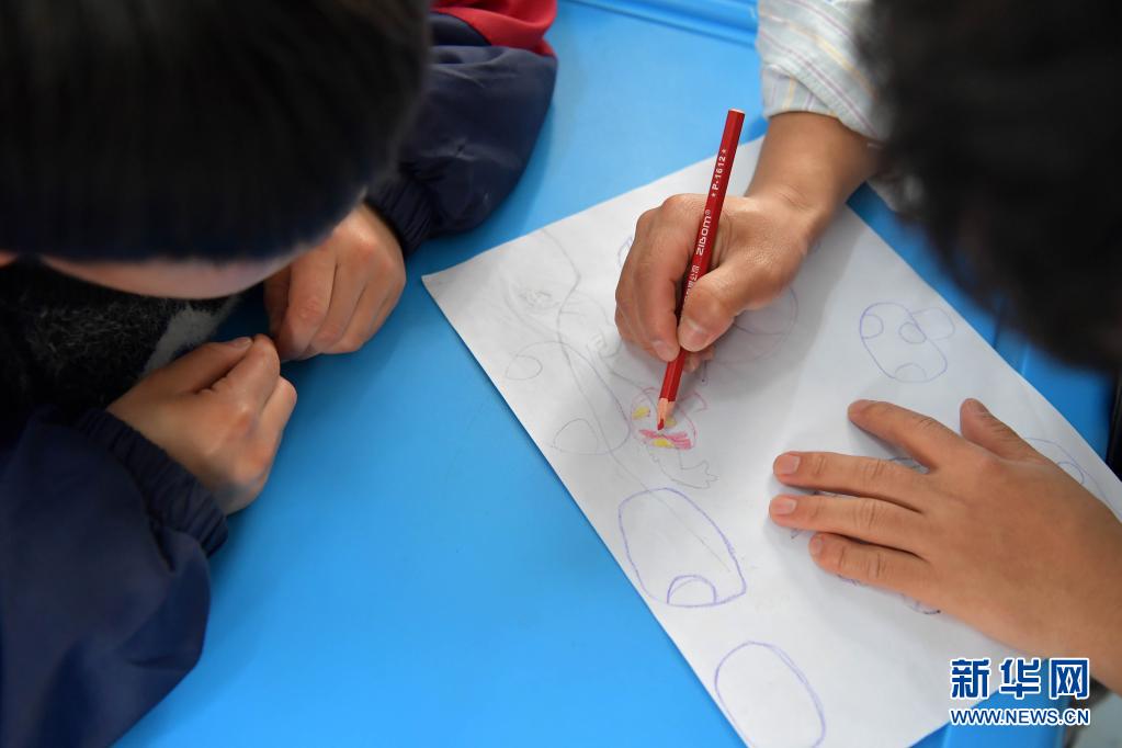 在江西省万载县特殊教育学校,唐友良指导学生画画(4月14日摄)。