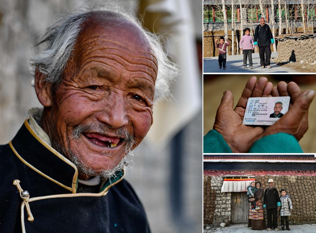 这是一张拼版照片,左图为达国杰的肖像(3月22日新华社记者张汝锋摄);右上图为达国杰和孙子孙女在村子里散步(3月22日新华社记者张汝锋摄);右中图为达国杰的身份证(3月22日新华社记者张汝锋摄);右下图为达国杰和家人在家门前合影留念(3月22日新华社记者孙瑞博摄)。