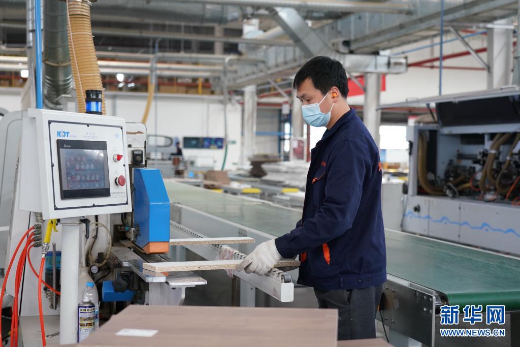 4月16日,在位于河北省唐山市汉沽管理区的阿贝尼(唐山)家具有限公司,工人在生产车间内工作。