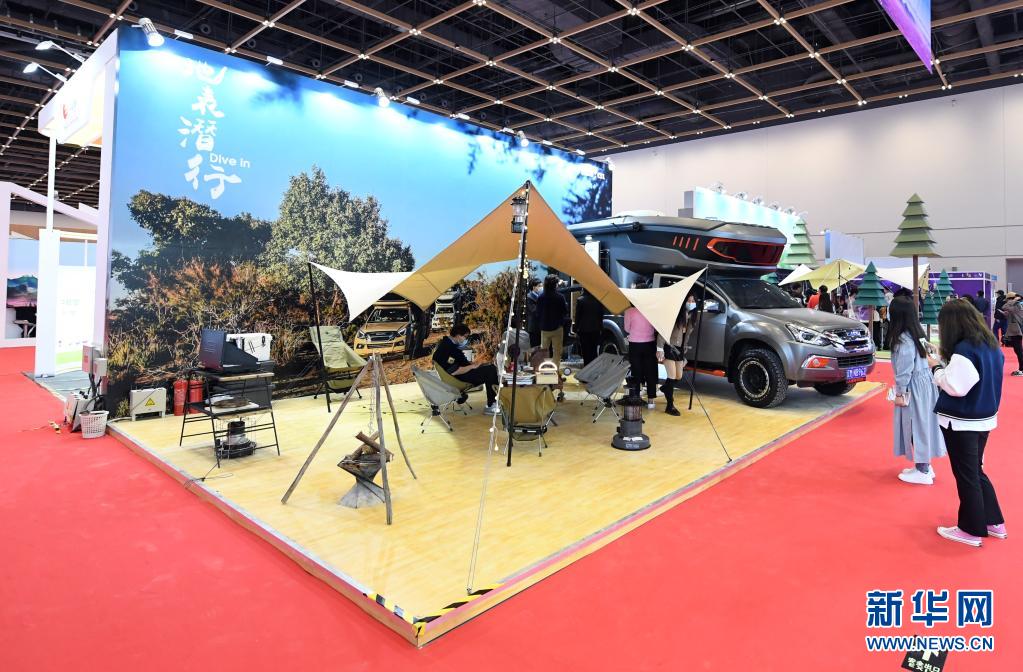 4月16日,在中国(北京)国际休闲产业博览会上,观众参观展出的户外装备。
