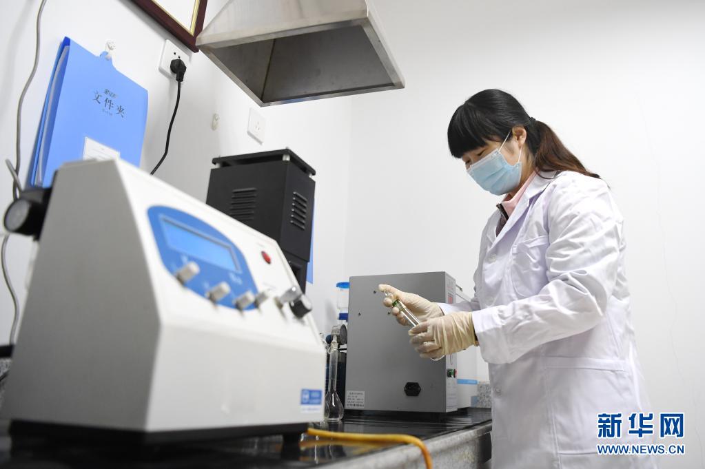 4月16日,中建路桥集团科技发展有限公司检测人员在原材料试验室对施工原材料进行化学检测。
