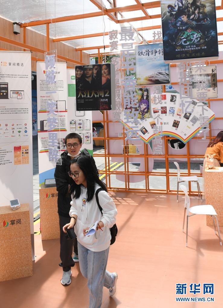 4月16日,参观者在一家数字阅读平台展厅参观。