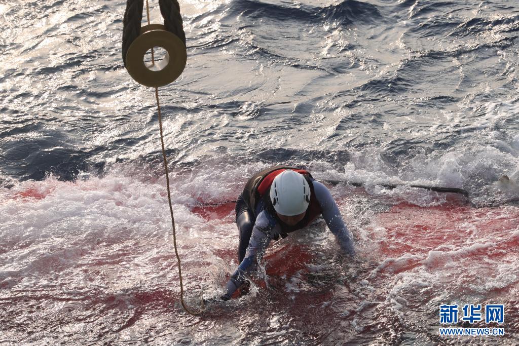 这是潜航员给载人潜水器“深海勇士”号挂主吊缆。
